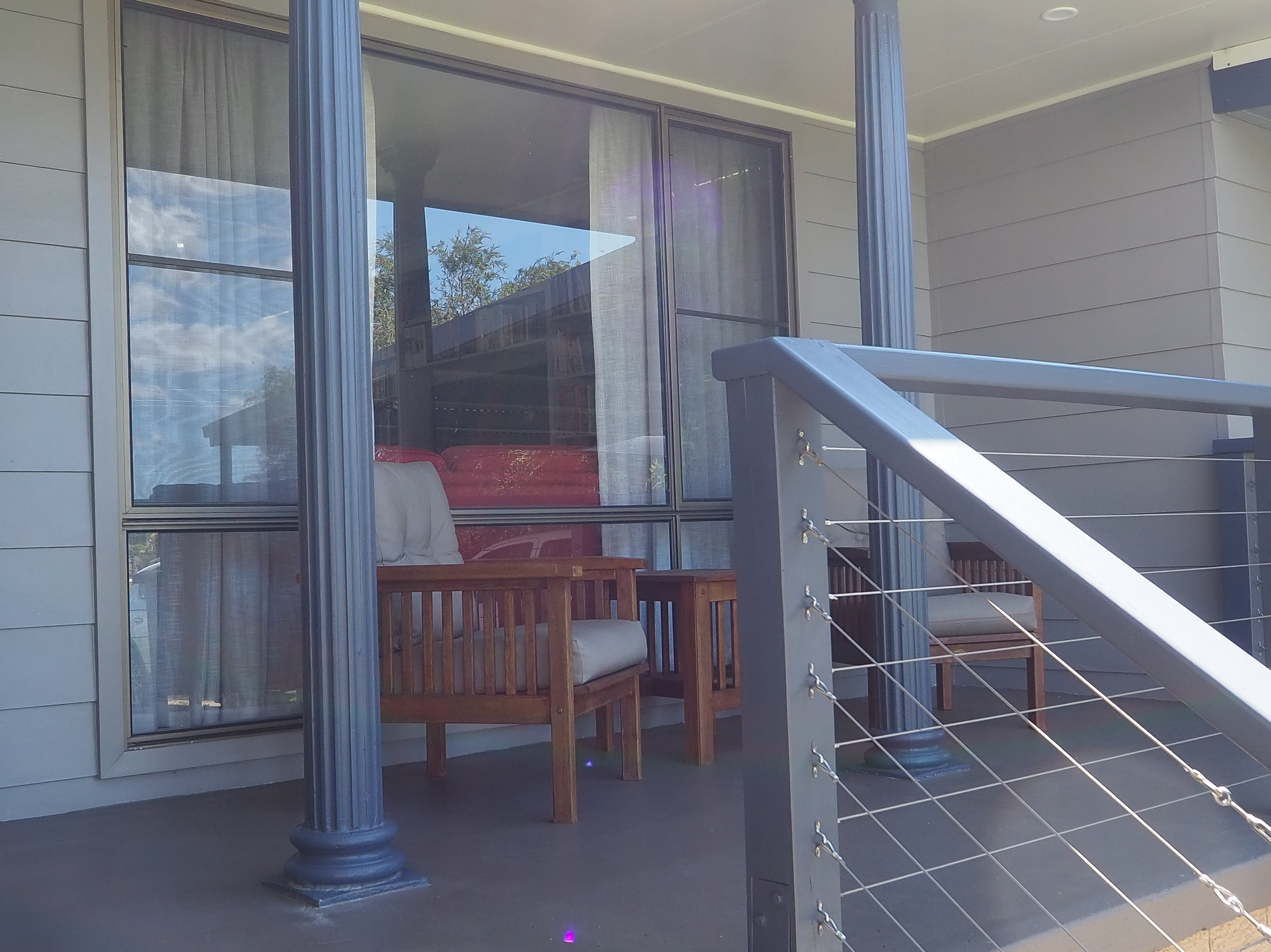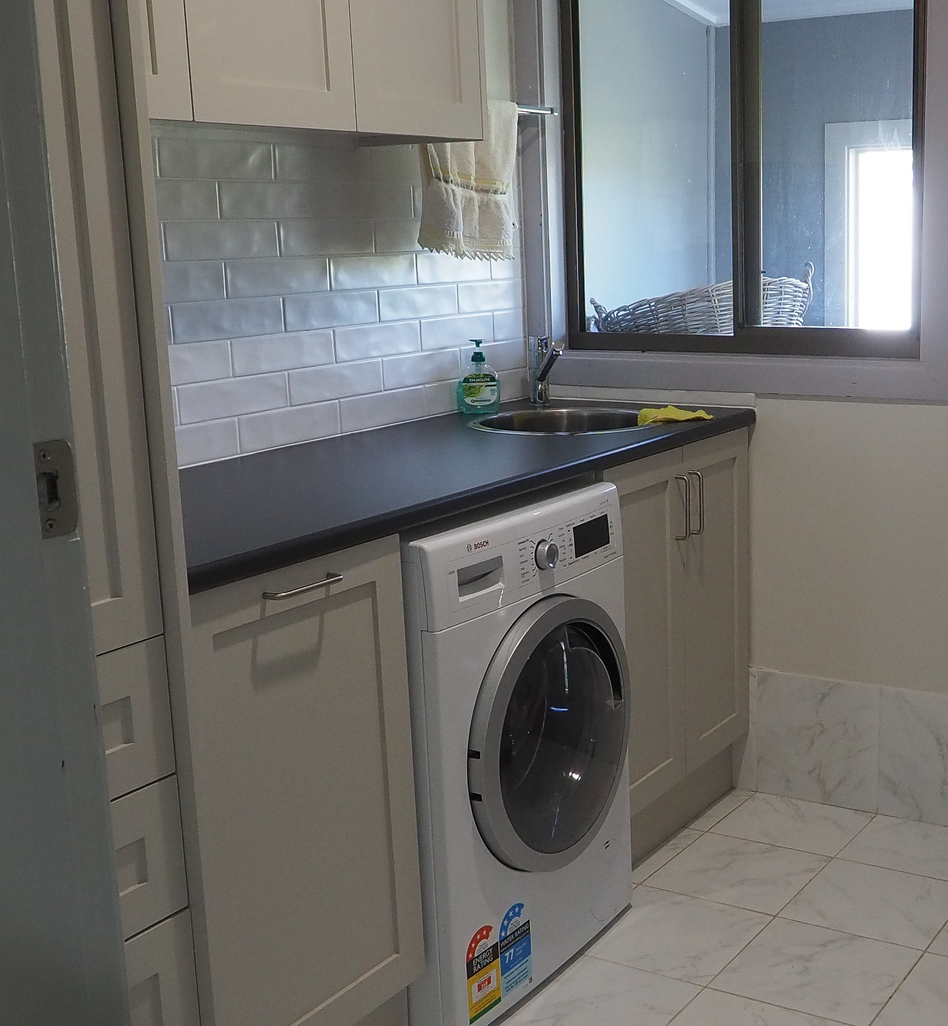 Mudroom off kitchen leads to new external deck Master bedroom has built in cabinetry, walk in robe and ensuite with pretty tiles and quality fittings Bedroom two has built in robes with office nook in one section and is situated across the hall from the spacious guest bathroom Large laundry room built in washing machine, plenty of storage and hidden slide out ironing board